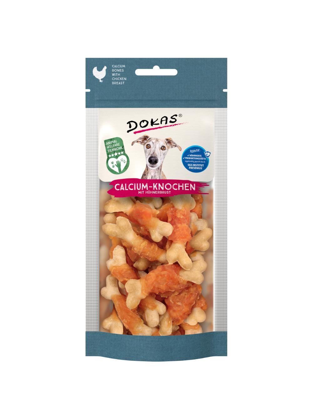 Dokas kalciumben med kyllingebryst. Den perfekte kombination af lækkert kyllingebrystfilet og sundt kalcium, der er vigtig for tænder og knogler. Kyllingebrysterne stammer fra dyr, der kommer fra opdrættere med høje dyrevelfærds standarder. Anvendes som en lækker godbid eller belønning af hunden.