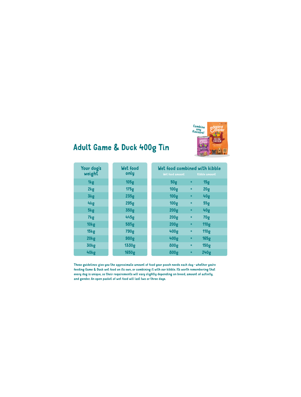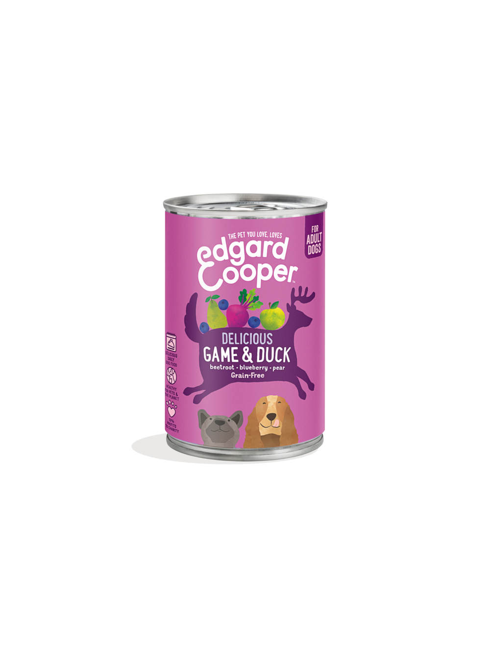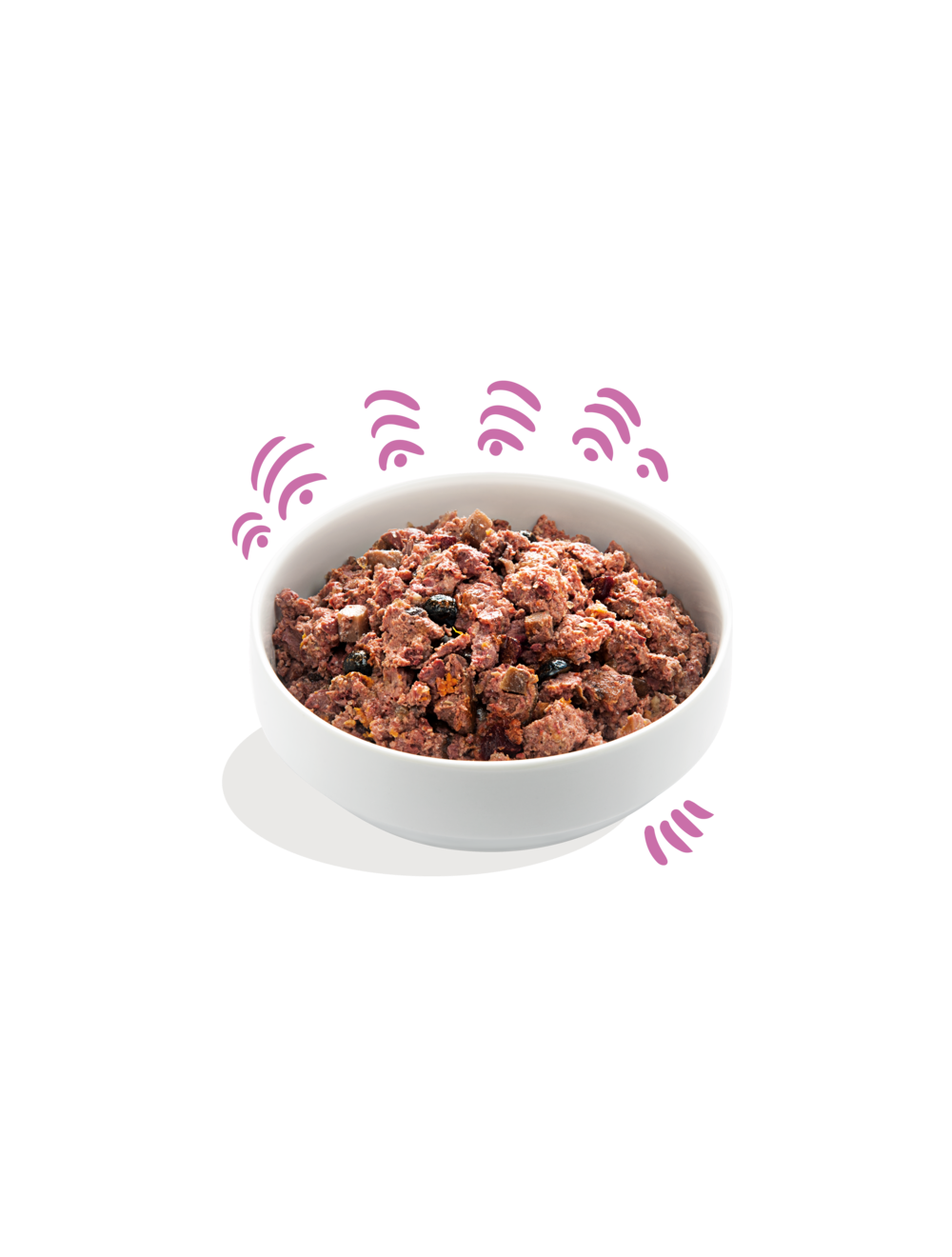 Denne kødfulde, kornfri opskrift er lavet ved hjælp af vildt og and - begge fantastiske nye proteinkilder, der er særligt gode til hunde med følsomme maver. Vildt er spækket med Omega-3, og opskriften indeholder også præbiotika, der understøtter en sund tarm. Som en bonus kombinerer vi kødet med indmad (som hjerte og lever) for en ekstra portion næring. Vi blander vores opskrifter med en supersund blanding af frugt og grønt, plus et ekstra boost af urter og planter. Så damper vi det forsigtigt for at låse al smag og godhed ind.